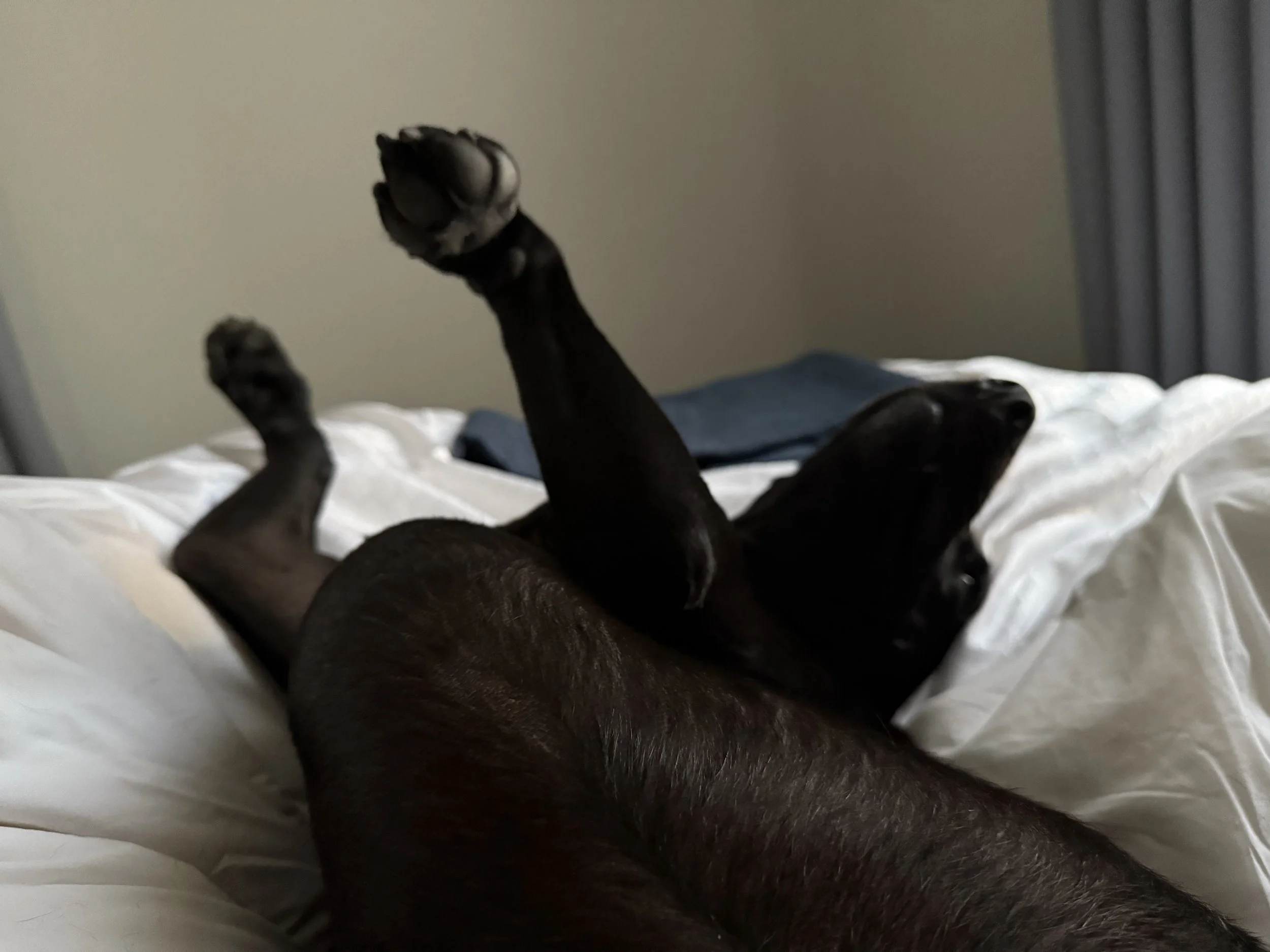 Didn’t sleep well sadly. The bed was comfy but I kept waking up through the night. The minute we checked into the hotel, the very first thing I did was jump in the shower and when I came out Jubs was asleep on the bed, sprawled out. She didn’t move an inch until I took her out for a pee before bed and then sprawled back out and didn’t move until morning. Lucky her.